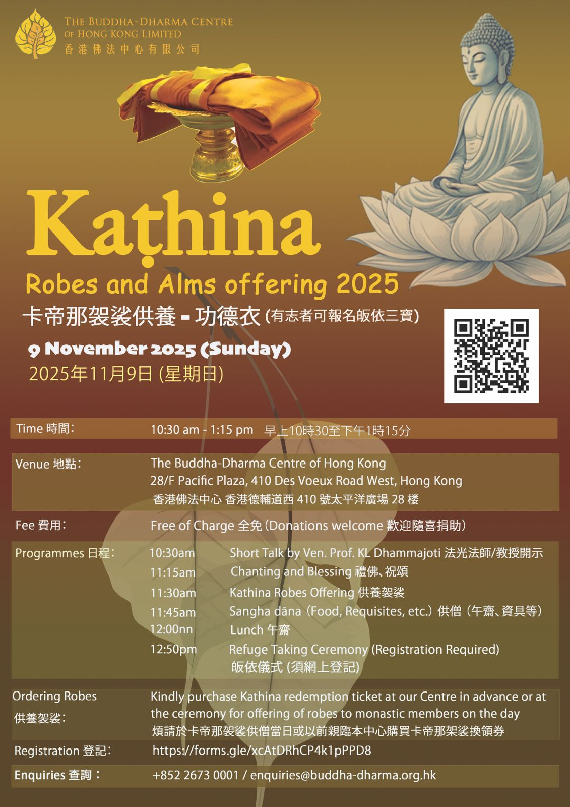 報名及查詢:+852 2673 0001/ enquiries@buddha-dharma.org.hk